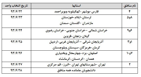 جدول زمانبندی منطقه ای جهت انتخاب واحد دانشجویان درنیمسال اول سال تحصیلی 94-93به شرح روبرو اعلام میگردد